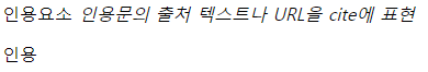 <blockquote>인용요소 <cite>인용문의 출처 텍스트나 URL을 cite에 표현</cite></blockquote>