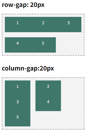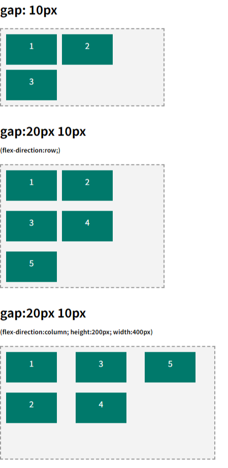 - flex-direction이 바뀌면 row-gap과 column-gap이 실제 적용되는 방향도 달라짐